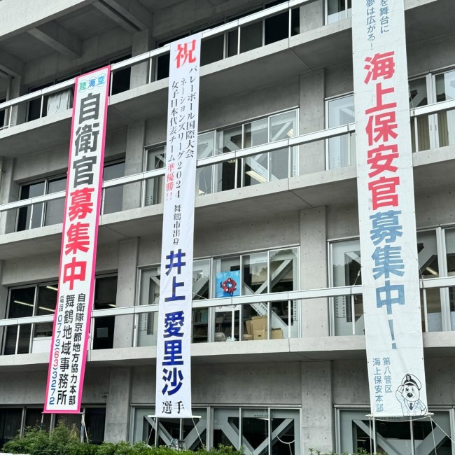 ということで、舞鶴市役所庁舎に懸垂幕を
