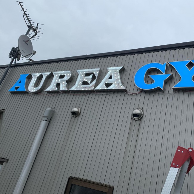 AUREA GYMさんに正面発光式のチャンネル文字💡を設置させていただきました🙇🏻‍♂️
