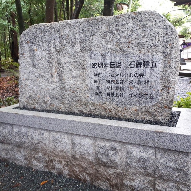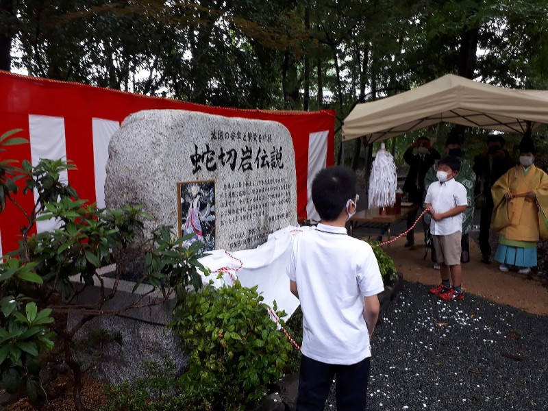 大森神社拝殿横に建立された「蛇切岩伝説」石碑の除幕式が執り行われました。