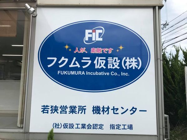 フクムラ仮設株式会社様の若狭営業所 機材センターにて、事務所壁面パネルサインを施工させていただきました。
