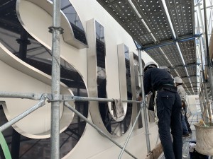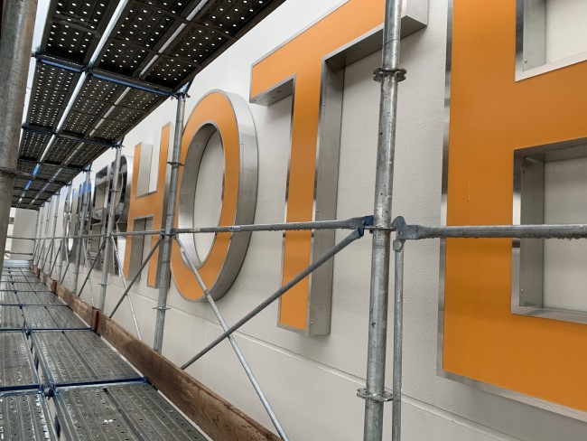 スーパーホテル東舞鶴のサイン設置が始まりました。
