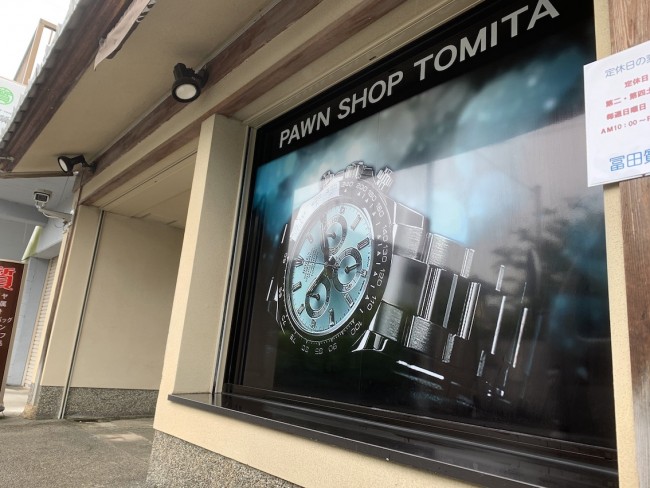 冨田質店様のウィンドウショーケースを利用して内照式のサインが出来上がりました🤩