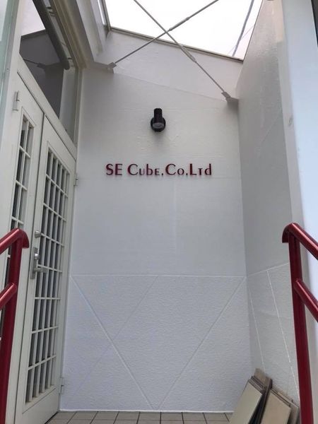 事務所入口壁面には、sus切り文字を15mm浮かしで設置。