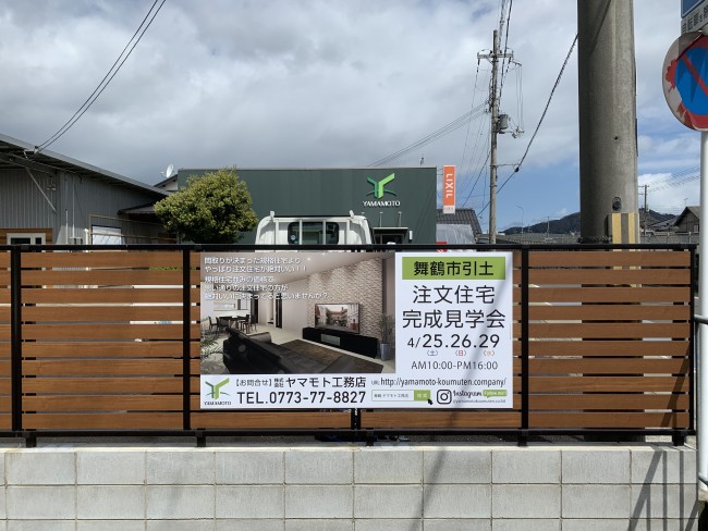 ヤマモト工務店様の完成見学会の告知をパネルサインにて製作させていただきました。