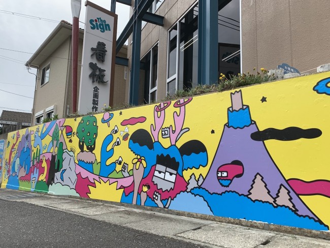 この壁画を見ていただいた方々が、少しでも明るい気持ちになっていただければとの思い🥰と、ついつい遊び心に火がつきまして😅