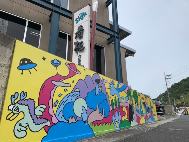 弊社のコンクリート壁面が、とっても賑やかになりました🥳🎨