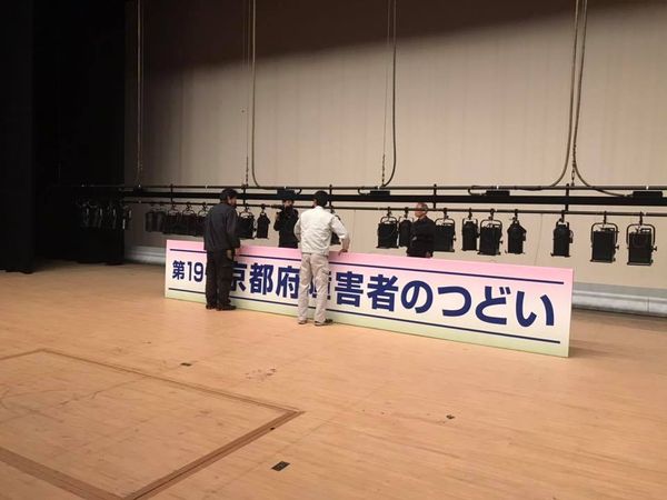 第19回京都府障害者のつどいの看板を舞鶴市総合文化会館にて前日設営させていただきました。