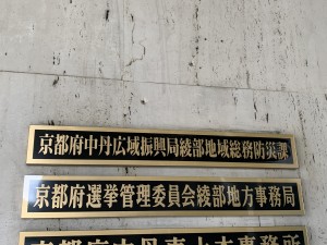 新年度に向けて部署の名称変更に伴い、京都府中丹広域振興局綾部総合庁舎の庁舎案内板をはじめ、突出しサインや木製サインを一新させていただきました。