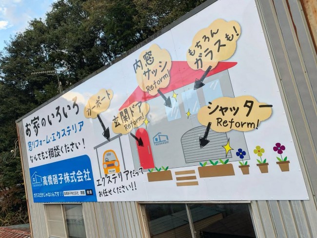 高橋硝子株式会社様の社屋壁面にガラスだけじゃないんです‼️というパネルサインを設置させていただきました🙇🏻‍♂️