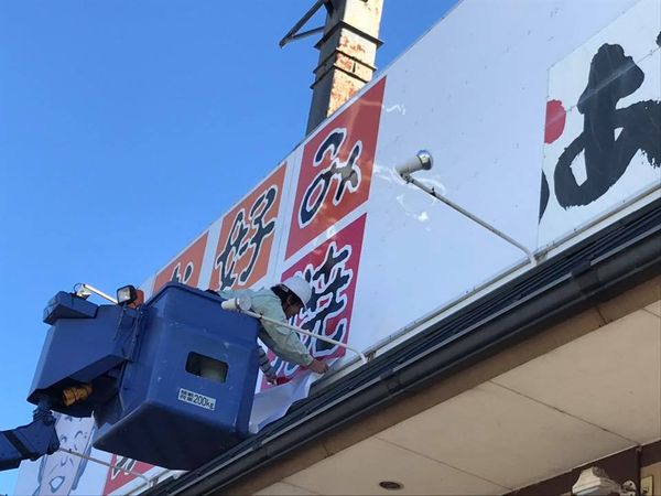 滋賀県長浜市にあるおかあちゃん長浜店にて、台風で被害を受けた箇所の修繕と新規看板諸々の設置をさせていただきました🙇🏻‍♂️