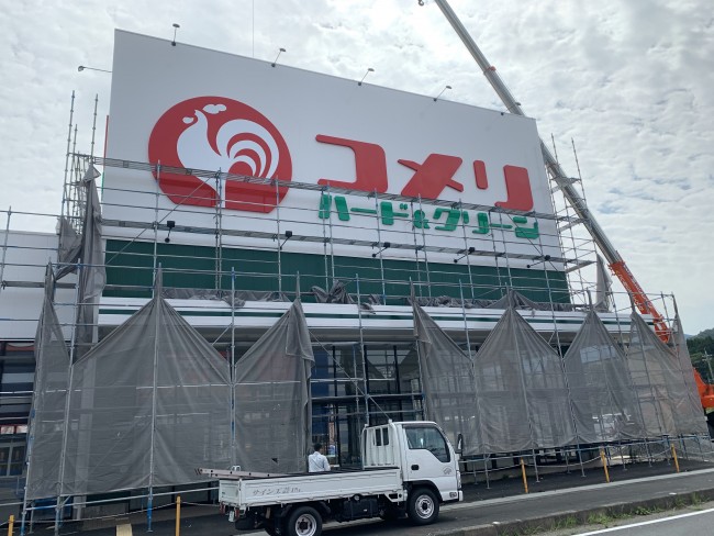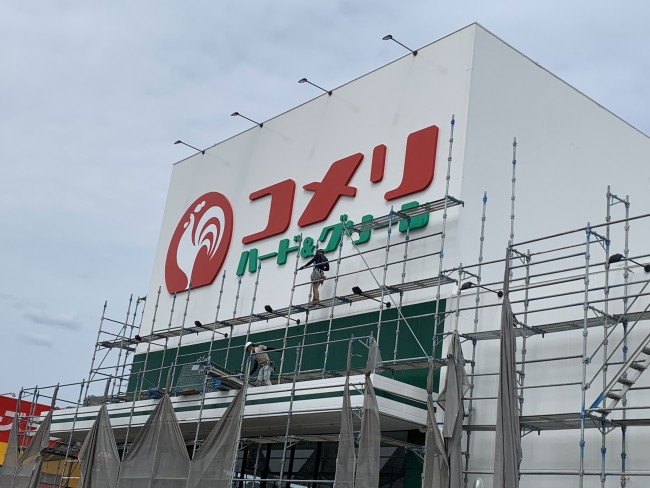 コメリ野田川店のオープンに伴い、株式会社備広様から看板設置のご依頼いただき、塔屋サイン3面を2.5日かけて現場施工させていただきました🙇🏻‍♂️