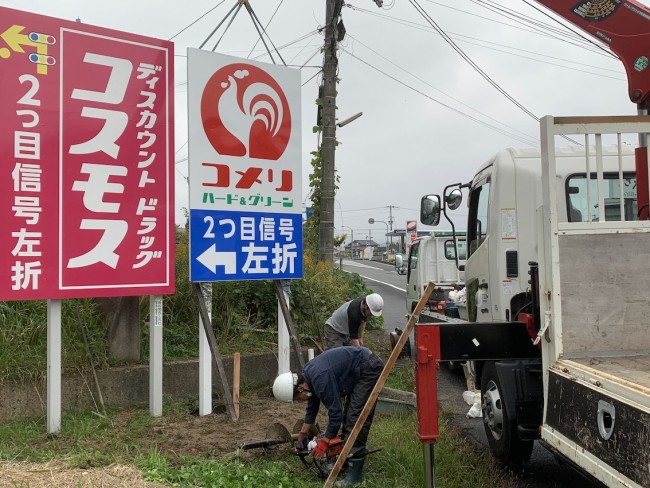 今月20日にオープンするコメリ野田川店のロードサインを2ヶ所設置させていただきました🙇🏻‍♂️