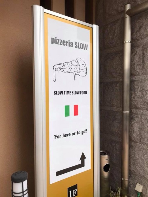 自立式植込みサインの意匠替えです。東舞鶴駅前のオーブ浜様の1階のピザ屋さんSLOWさんです。